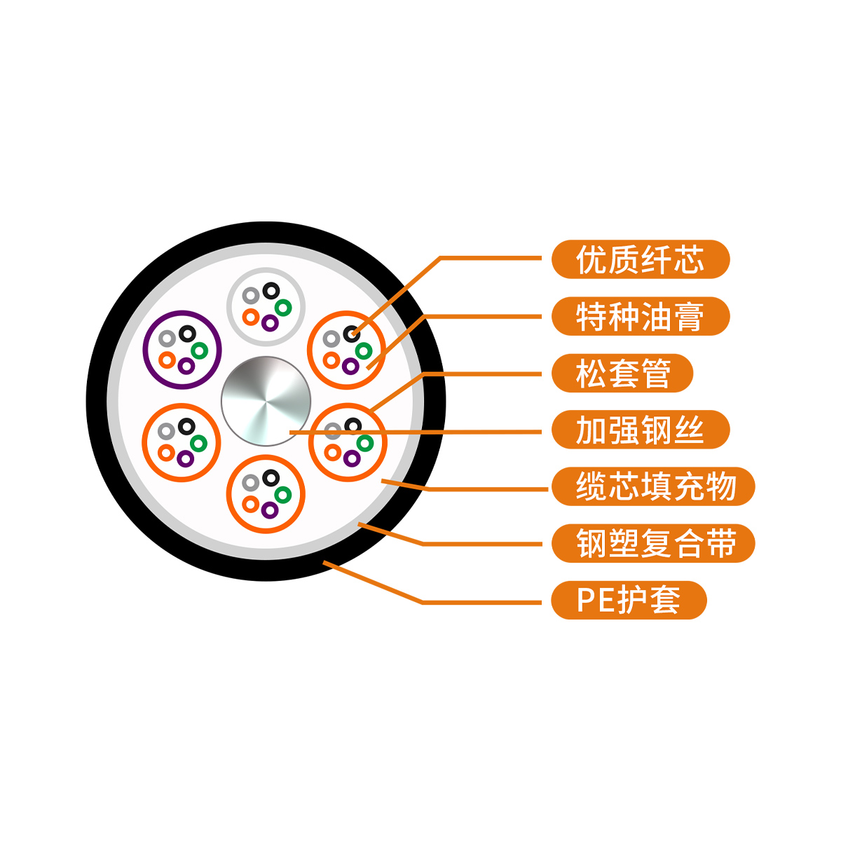 金屬加強(qiáng)構(gòu)件松套層絞填充式鋼——聚乙烯粘結(jié)護(hù)套通信用室外光纜